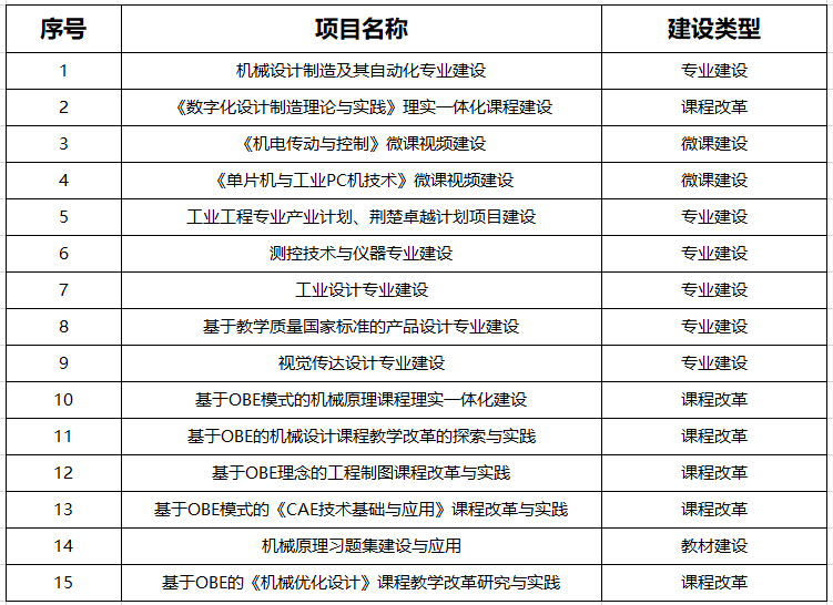 2018年度“本科教学工程”项目汇总
