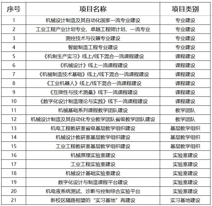 2021年度“本科教学工程”项目汇总
