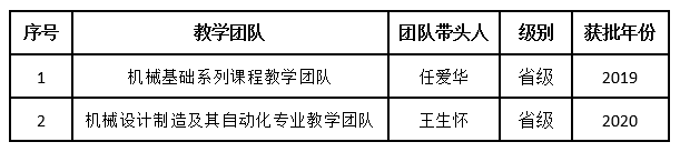 近日,省教育厅发布了2020年湖北高校省级教学团队及优秀基层教学组织名单,公司机械设计制造及其自动化专业教学团队获批省级教学团队,机电工程教研室获批省级优秀基层教学组织。至此,公司共有2个省级教学团队和2个省级优秀基层教学组织。