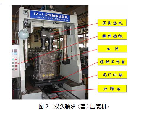 中心偏差自适应轴承轴套并联压装机由公司机械公司常治斌教授与东风汽车变速箱有限公司联合研制,根据压头数量可分为单头、双头和多头轴承轴套压装机。该成果已获得“多头并联立式轴承轴套压装机(专利号:ZL20092 0229503.0)”和“中心偏差自适应内装夹伸缩压头(专利号:ZL200920229502.6)”2项专利。其中,单头和双头轴套压装机已在东风汽车变速箱公司安装投入生产运行,经过数万台变速箱轴承压装的考验,表明该设备设计合理、操作方便、运行可靠,各项技术性能指标均达到了产品生产的要求,并已经取得了显著的经济效益和社会效益。经专家鉴定,该项技术达到国际同类设备技术水平,质量可靠、整机性价比高,部分性能指标优于同类进口产品,可替代进口。该项成果获2012年十堰市科技进步二等奖。