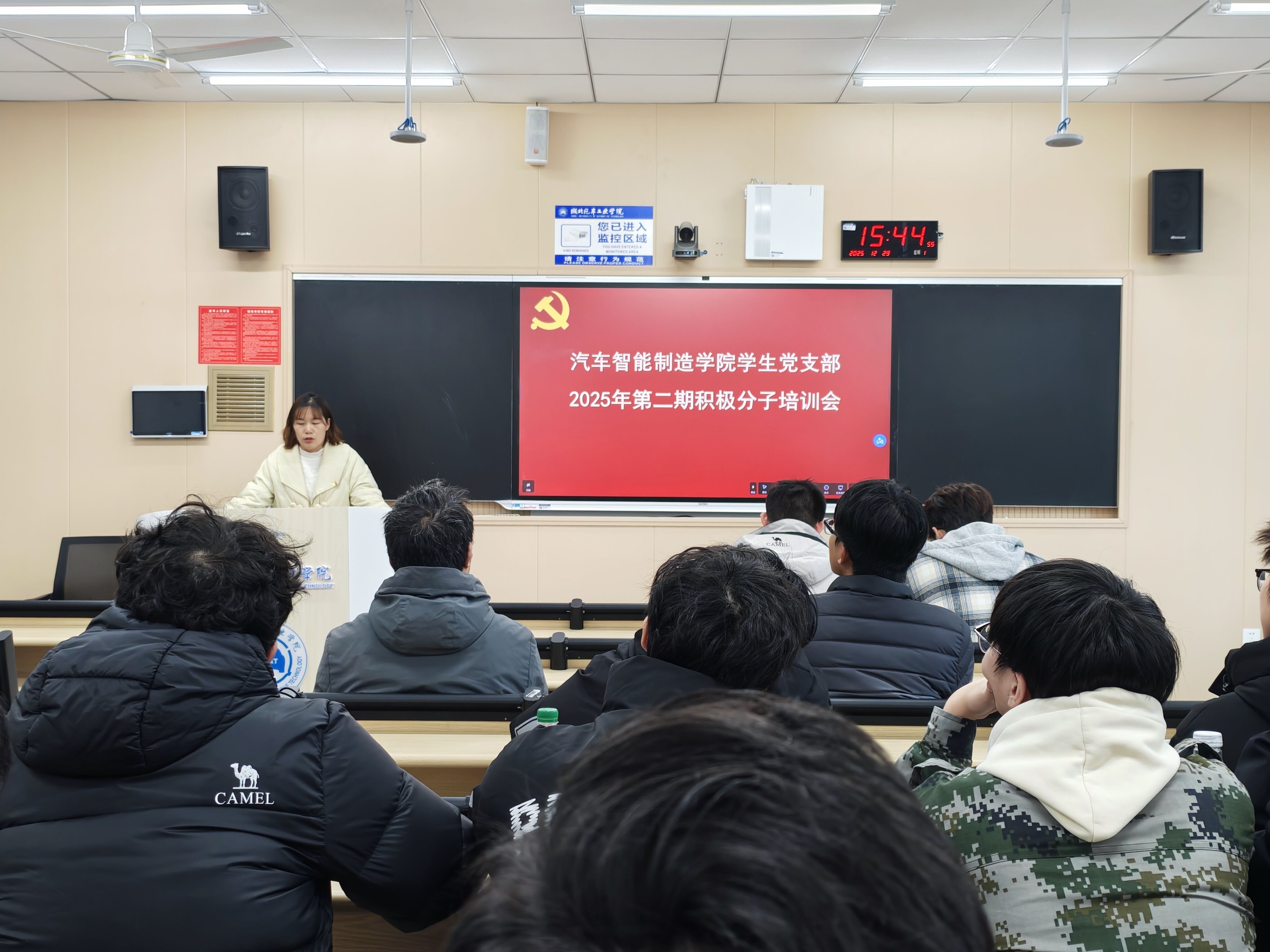 伟德国际VICTOR1946辅导员、十堰市青年讲师团成员杜辰楠以《以青春之名书写中国式现代化建设的崭新篇章》为题,为入党积极分子作专题辅导。他系统阐释了党的二十届四中全会的重大意义与核心内容,重点解读了全会关于“十五五”时期发展的战略部署。杜辰楠以“三问”逻辑深化理解:通过“接续之问”总结历史经验、把准前行方向;通过“未来之问”明确目标任务、科学规划蓝图;通过“落实之问”号召青年锚定“十五五”、奋进新征程。他强调,“十五五”征程需要青年接续奋斗,生逢其时的青年一代重任在肩。