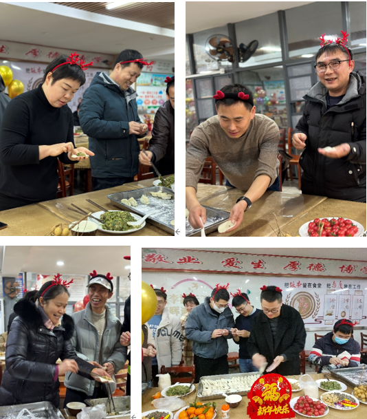 “热心装满呈和美,冷水烧开腾瑞祥”饺子尚未出锅,大家就“抄家伙”排队取餐。“我吃了个饺子是甜的,哈哈哈”“这个露馅了,肯定是××包的”“芹菜馅的,好吃”…伴随着一阵阵欢声笑语,大家吃的不亦乐乎,其乐融融。在2023年学期末的最后一天大家一起吃着饺子回味着一年的收获,经理书记邀大家共同举起加多宝送出新年祝福,为2024年提气鼓劲,凝心聚力,攻坚克难积蓄力量。