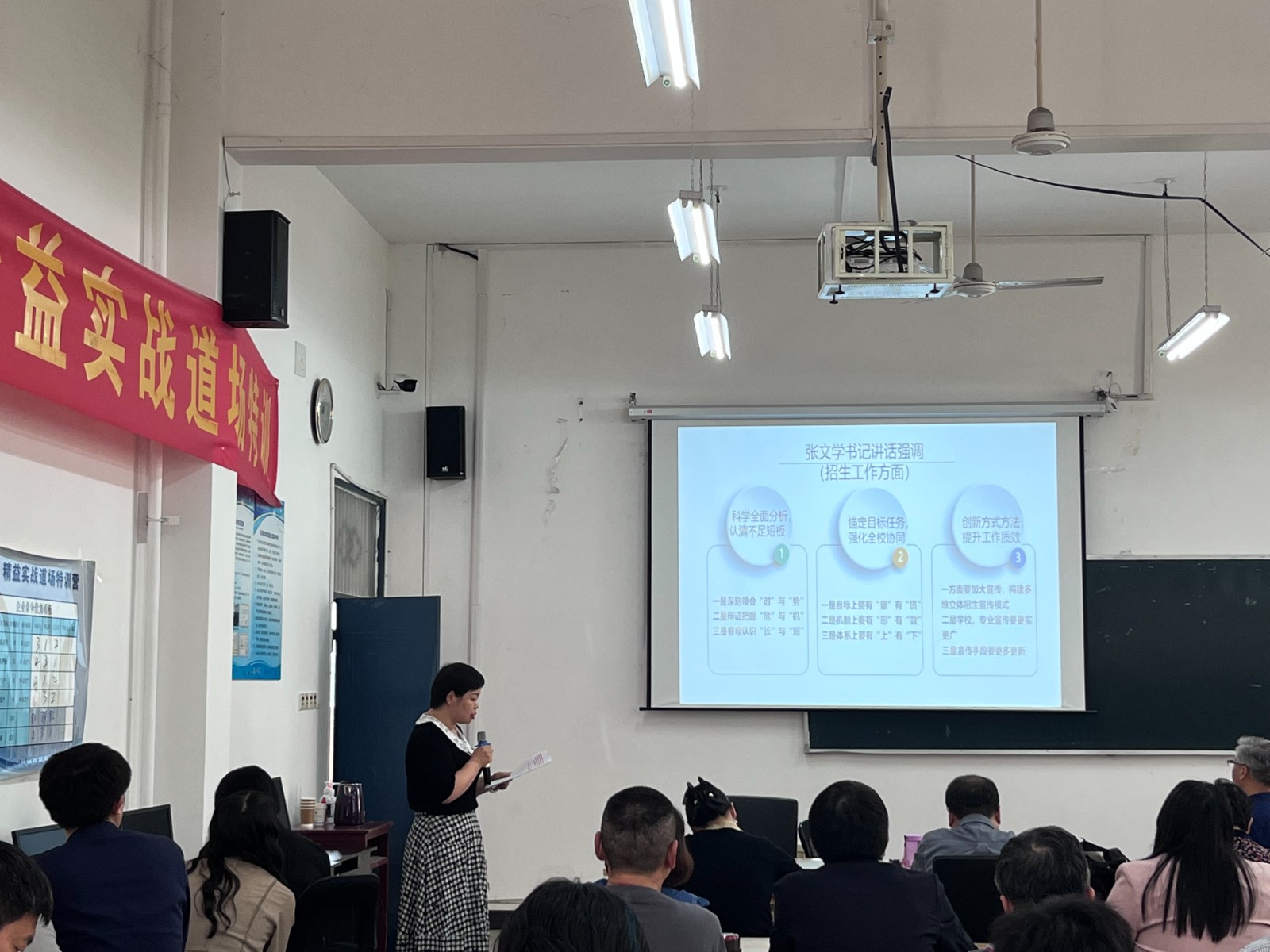 会上,分党委书记崔海英首先传达了3月31日公司召开的人才招聘工作表彰暨2023年部署推进会的会议精神,接着对公司2022年招生工作进行了总结,随后对2023年招生工作目标、形势、挑战作出介绍,并详细列举2023年招生工作的时间线及具体部署计划。
