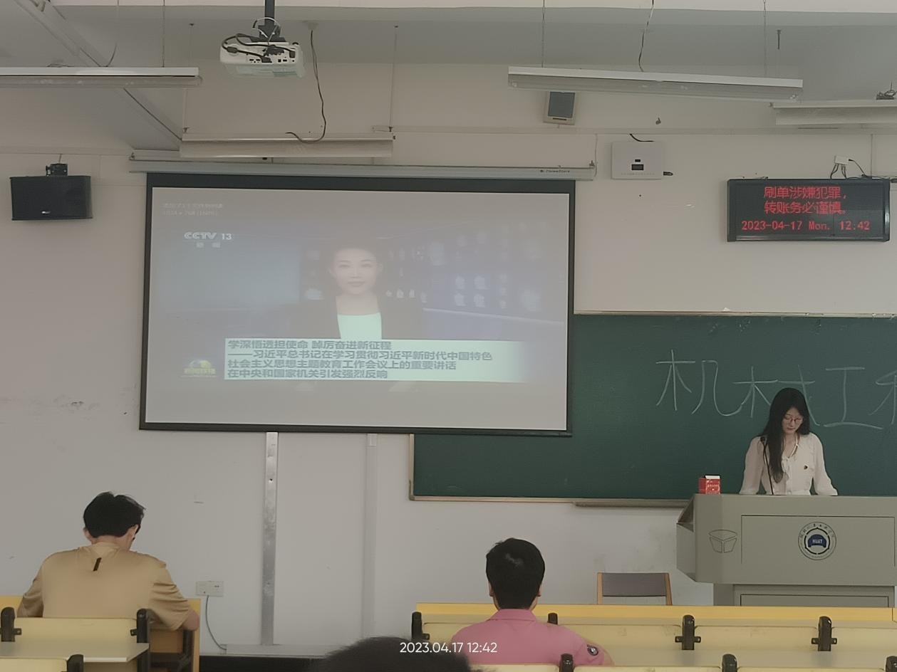 会上,全体党员在完成佩戴党徽、交纳党费、诵读党章等规定动作后,由陈策全同志带领全体党员重温入党誓词,在激昂庄重的宣誓声中,本次主题党日活动正式拉开序幕。冯絮絮同志带领全体党员集中深入学习贯彻习近平新时代中国特色社会主义思想主题教育工作会议精神,接着由敖国颂、焦广振、周家栋、胡冯带领全体党员分别学习了:习近平总书记在中共中央政治局3月30日会议上的重要讲话精神;习近平总书记关于总体国家安全观的重要论述;中共中央办公厅印发的《关于在全党大兴调查研究的工作方案》;《这就是中国》第164期:聚焦二十大一世界热议中国式现代化。