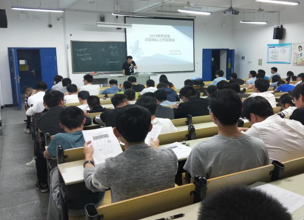 为增强毕业生诚信履约意识,切实做好2019届毕业生生源地信用助学贷款的还款确认工作,机械公司于5月10日晚在6213教室召开2019届毕业生生源地信用助学贷款还款确认工作说明会,会议由机械公司辅导员詹俊老师主持,近百余名毕业生参加了会议。