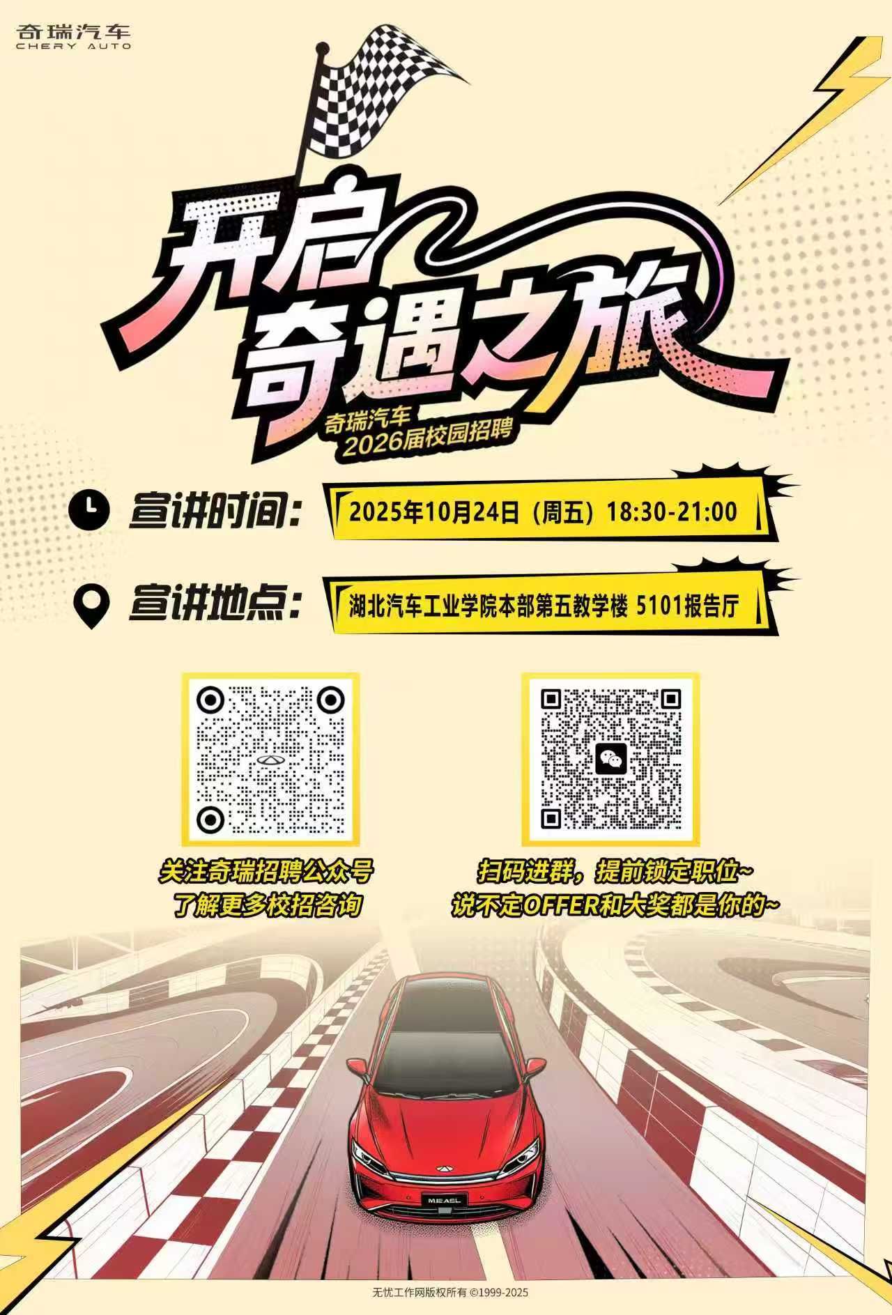 不负秋日好时光,加入奇瑞汽车,开启你的奇遇之旅吧~