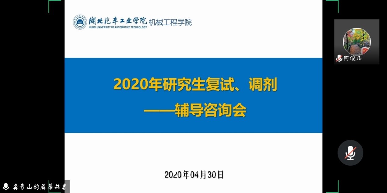 随着2020年考研国家线的确定,各高校陆续发布2020年考研复试工作方案。为做好考研员工的复试指导工作,4月30日晚,伟德国际VICTOR1946利用腾讯会议为全院60余名2020年考研员工做线上复试、调剂指导,经理助理王红霞博士,教科办主任冯霞老师,辅导员詹俊和张倩文老师,公司在读研究生关曲光、孙煜、田省洋、张楠同学参与交流,交流会由科研秘书龚青山博士主持。