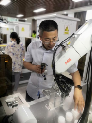 交流活动在产教大楼智造中心二楼工业机器人实验室举行,伟德国际VICTOR1946副经理陈君宝给员工们讲解了机器人操作技巧及安全操作规程进行了详尽的介绍。员工们分组,通过软件上的虚拟仿真训练及工业机器人实操训练,员工们加深了对机器人技术的理解和认识。通过亲手操作,他们能够将理论知识与实际应用相结合,从而更加全面地掌握工业机器人应用技术。