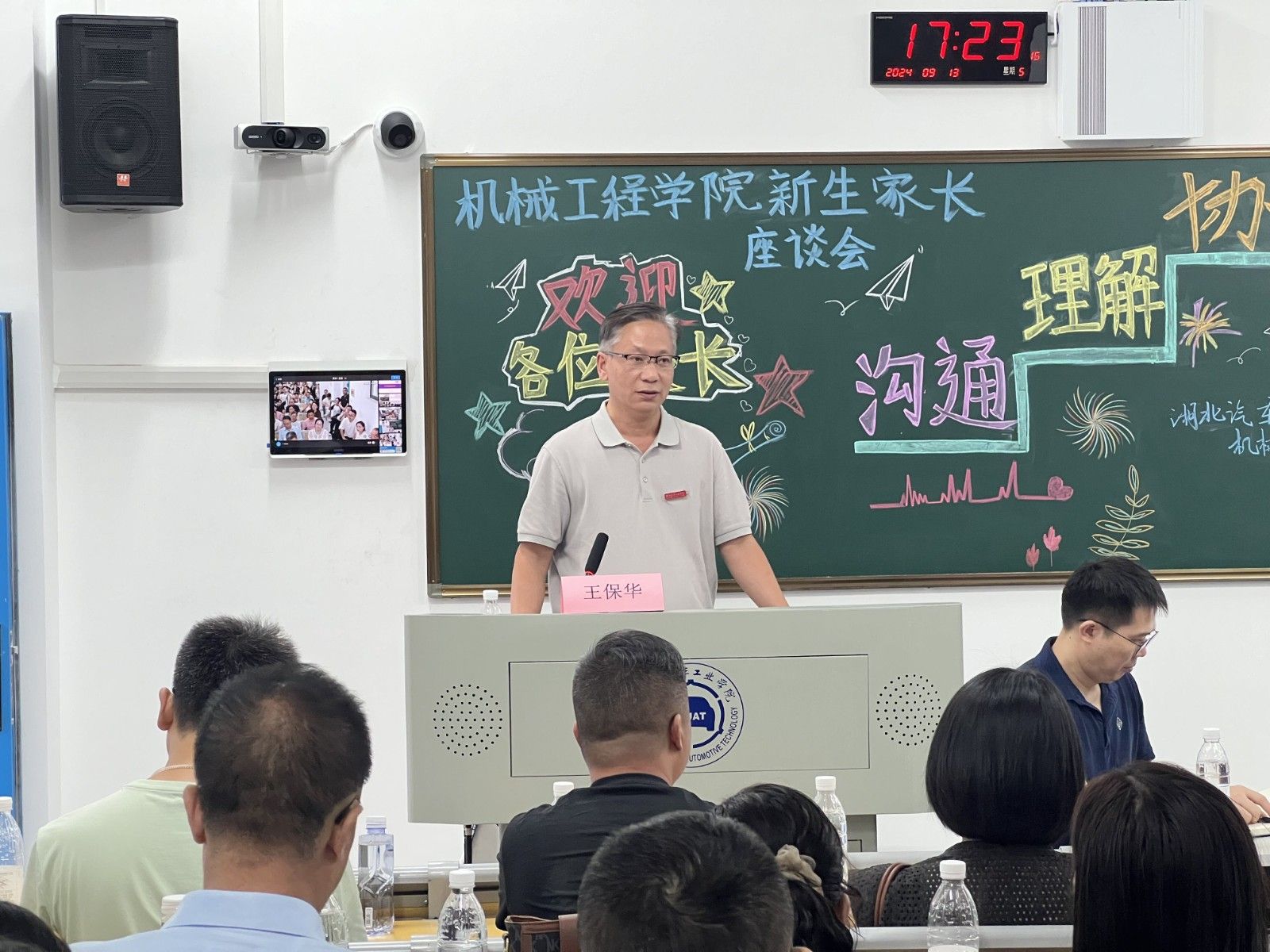 王保华从伟德国际VICTOR1946简介、专业特色、员工培养三个方面介绍了公司的发展情况,他表示,公司将进一步强化家校联动,希望家长们能够更多地参与并了解公司的育人工作,通过家校协同共同提升育人的质量和效果。同时,王经理表达了对于2024级新生的期望,期待孩子在大学广阔的平台上拓展视野、锻炼能力,为个人未来的发展奠定坚实的基础。