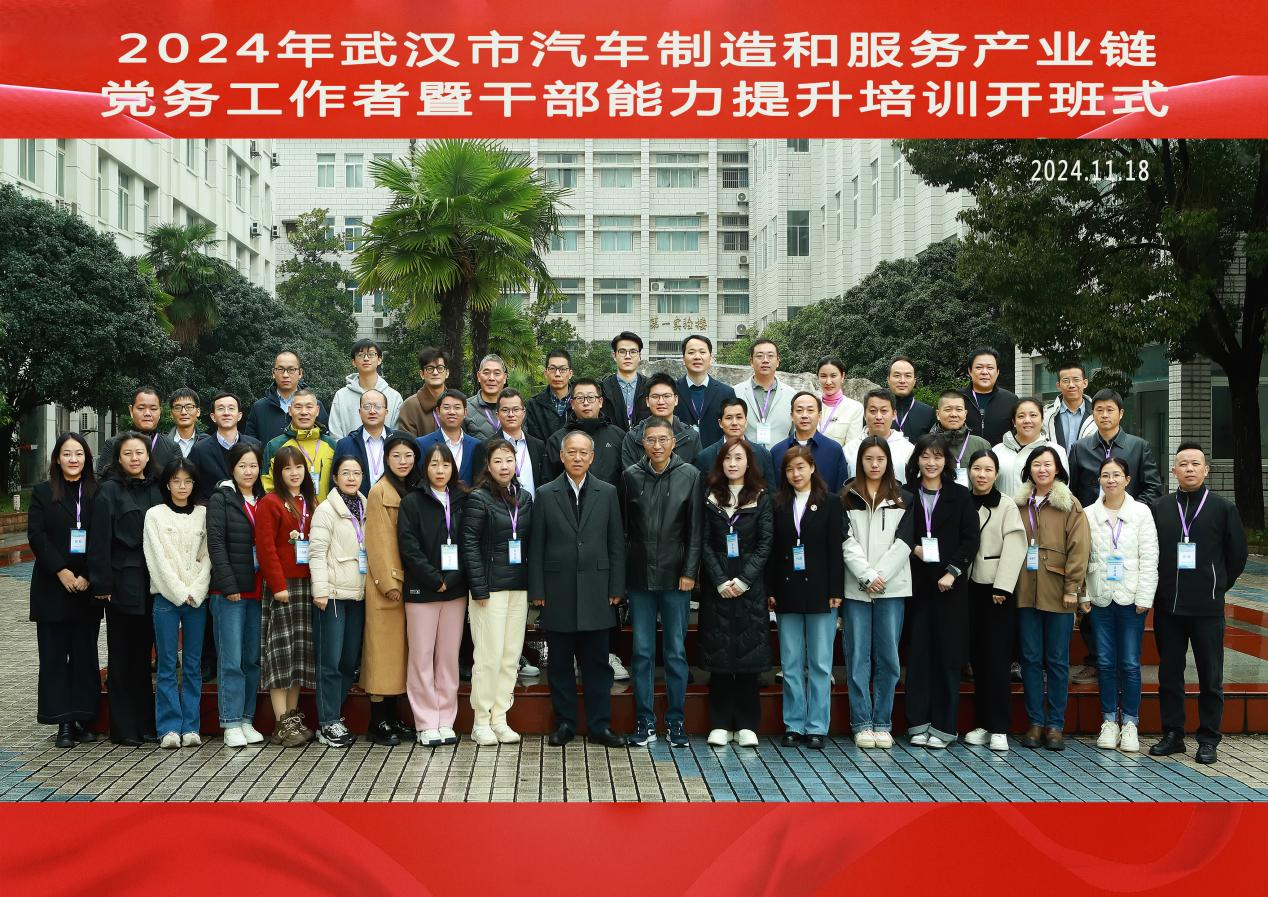 本网讯(文/图 丁嘉)11月18日,武汉市2024年汽车制造和服务产业链党务工作者暨干部能力提升培训班在公司举行。武汉市经济和信息化局副局长、武汉市汽车制造和服务产业链综合党委书记李林清,公司工会主席陈海峰出席开班式,来自东风商用车、东风乘用车、东风本田等40余家产业链龙头企业的党务工作者和业务骨干参加此次培训。开班式由武汉市经信局汽车产业处处长洪云飞主持。