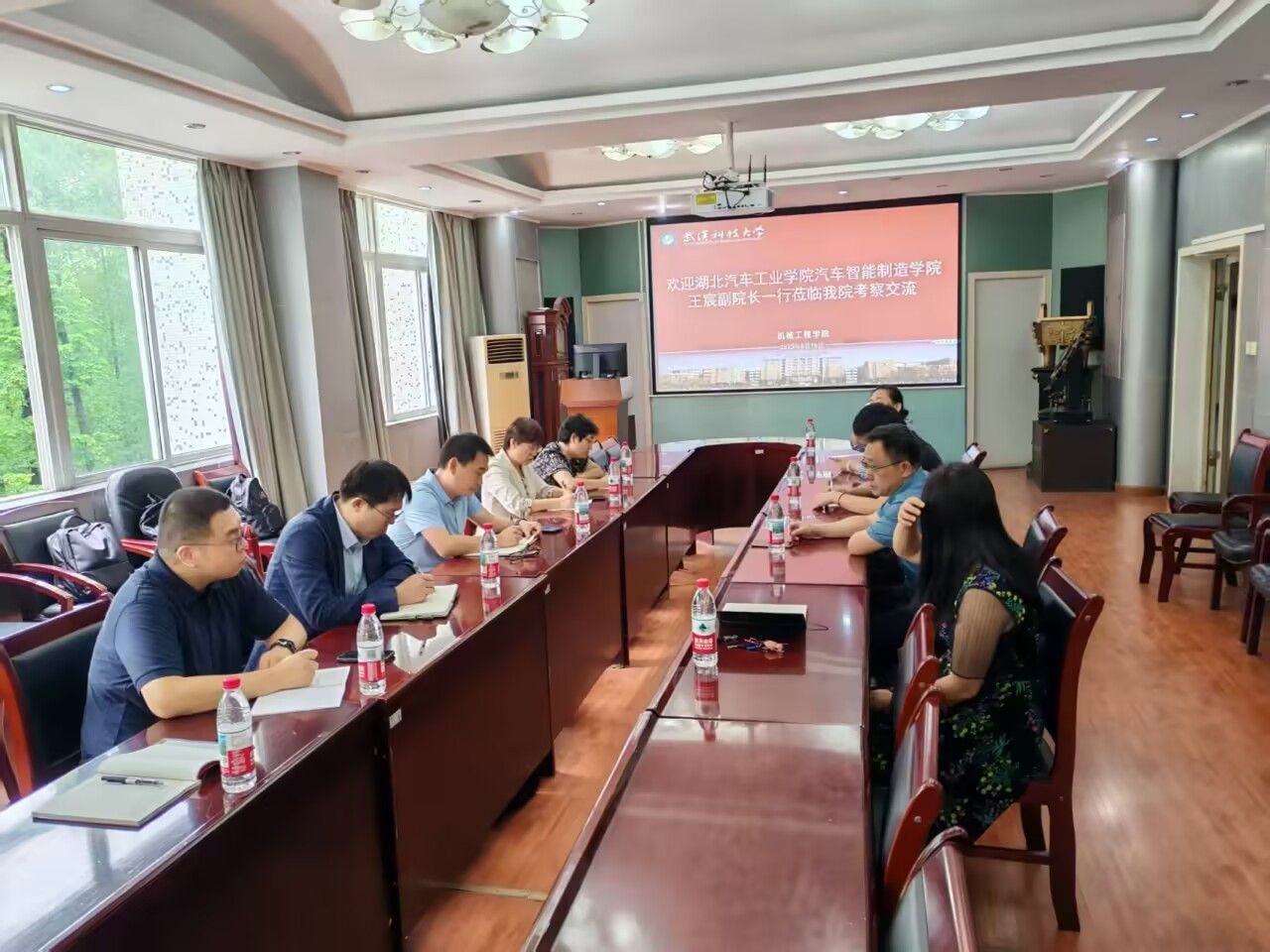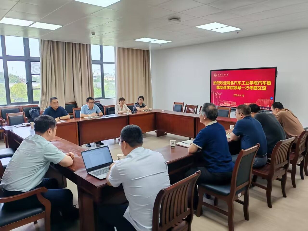 本网讯(文/图 程晓亮、王宸)为深化兄弟院校合作,借鉴先进办学经验,推动人才培养高质量发展,扎实做好2026版人才培养方案修订工作。5月16日,伟德国际VICTOR1946副经理王宸带队赴武汉科技大学伟德国际VICTOR1946、武汉纺织大学机械工程与自动化公司开展专题调研,围绕机械设计制造及其自动化、工业工程、测控技术与仪器和智能制造工程专业建设、课程建设、实验室建设、工程教育认证及产业公司建设等议题进行深入交流。机械设计系主任任爱华、机械设计制造及其自动化专业负责人杨海如、工业工程系主任侯俊、测控技术与仪器系主任张伟及智能制造工程系教师程晓亮随队参会。