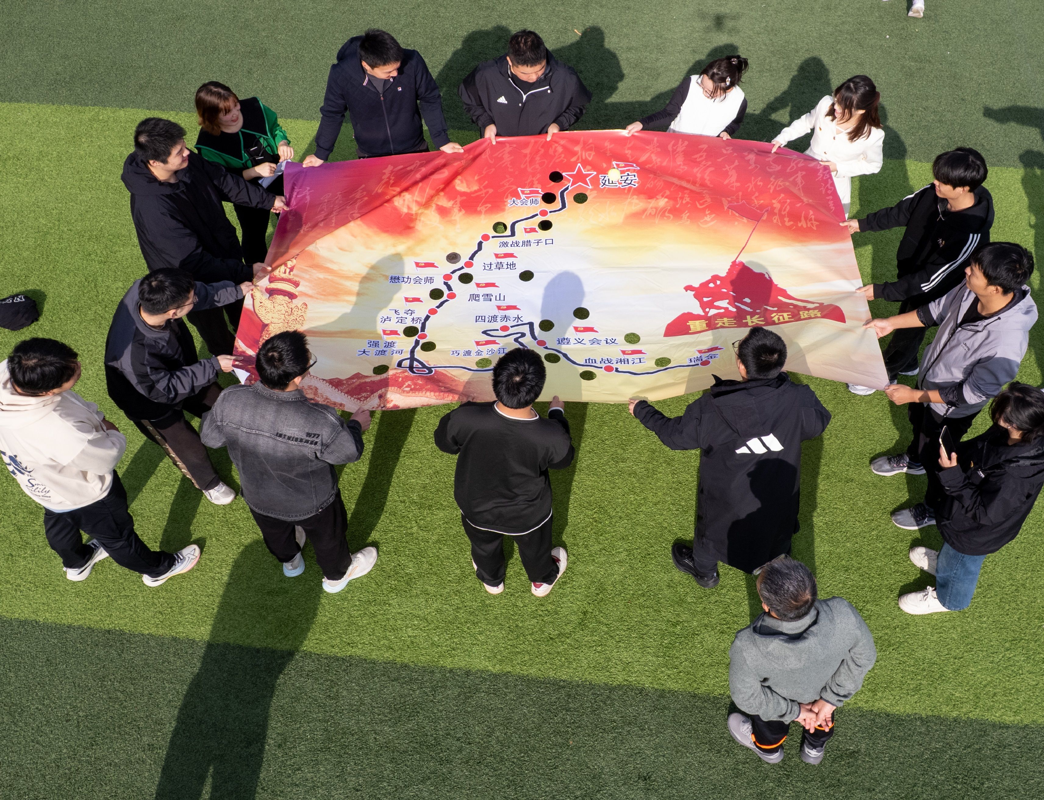 “重走长征路”项目一亮相,就吸引了党员们的目光!没有翻山越岭的疲惫,却有“步步惊心”的挑战——党员们通过调整画布的角度和幅度,推动象征红军的网球从“瑞金”出发,沿长征路线前行至“延安”,画布上的“孔洞”模拟当年国民党军队的围追堵截,“网球”掉落需重新开始。“红军当年走长征,可比这难千万倍!”有党员一边调整节奏一边感慨。在真实的互动中提升默契,让党员们切身感受到了长征的艰辛与红军的不屈精神。