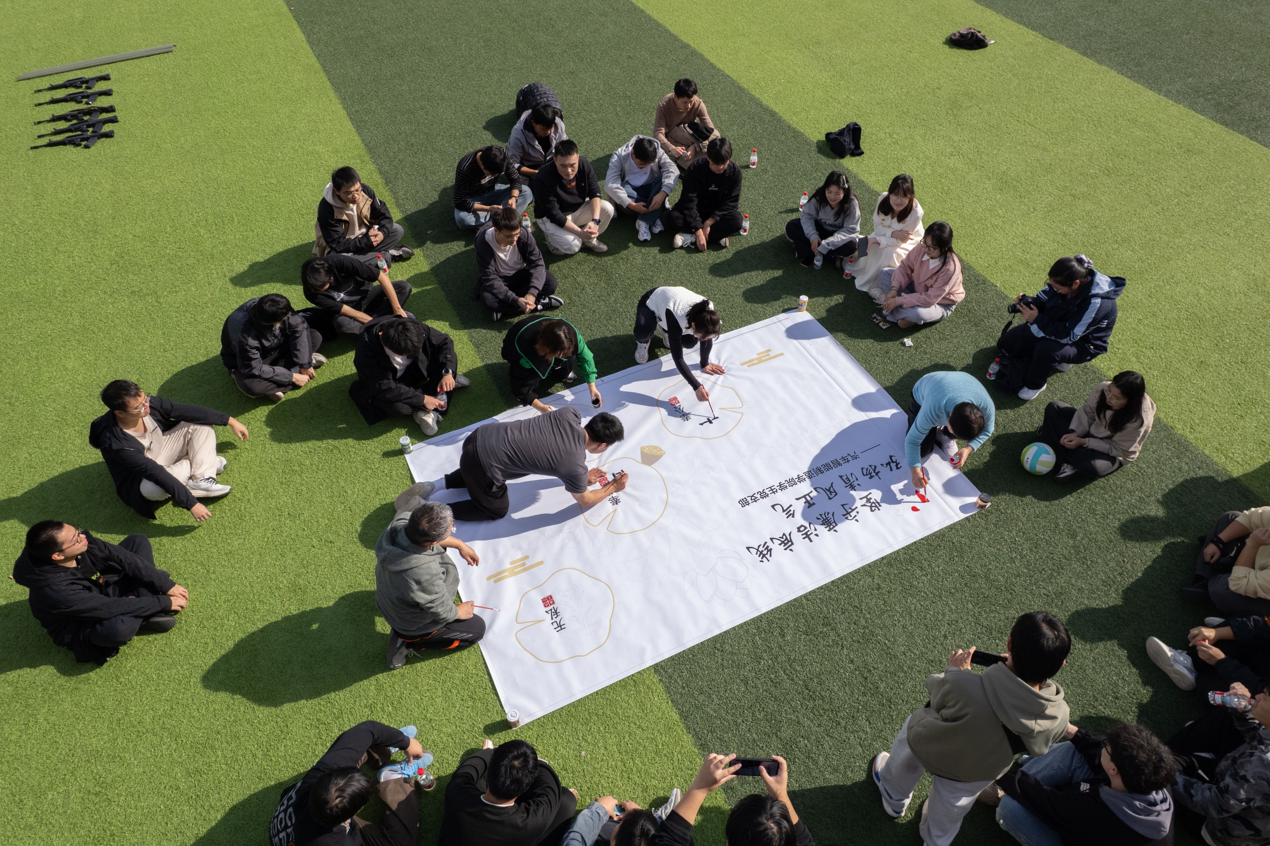 整场活动的高潮落在“共绘巨图”环节,公司领导、支部书记与全体员工党员共同执起画笔,俯身于巨幅画布四周,调和色彩、勾勒线条,以手中七彩为廉洁着色,分散的图块在党员们的一笔一画中汇聚成壮丽画卷。这幅由集体力量凝练而成的画卷,成为全体党员坚守初心、永葆本色的生动见证。