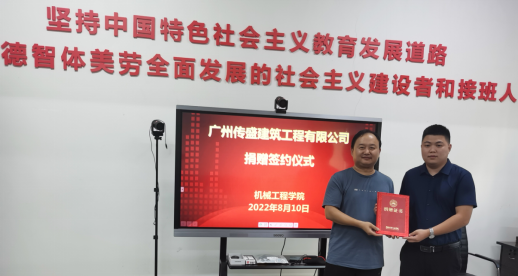8月10日下午,伟德国际VICTOR1946206会议室,举办广州传盛建筑工程有限公司捐赠仪式。发展规划处副处长陈雪刚、机械公司副经理陈君宝、机械公司部分老师代表参加捐赠仪式。仪式由陈君宝主持。