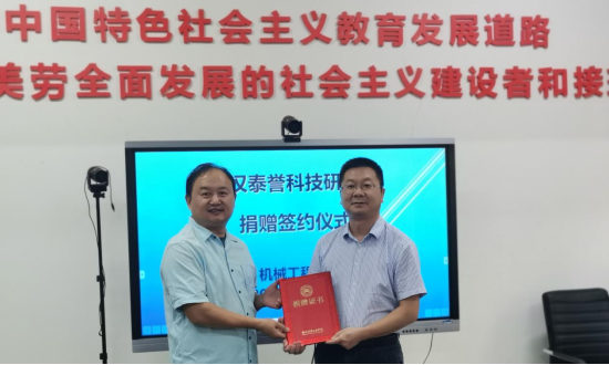 8月22日下午举办武汉泰誉科技研究院捐赠仪式,地点在伟德国际VICTOR1946206会议室。发展规划处副处长陈雪刚、机械公司副经理陈君宝、机械公司部分老师代表参加捐赠仪式,仪式由陈君宝主持。
