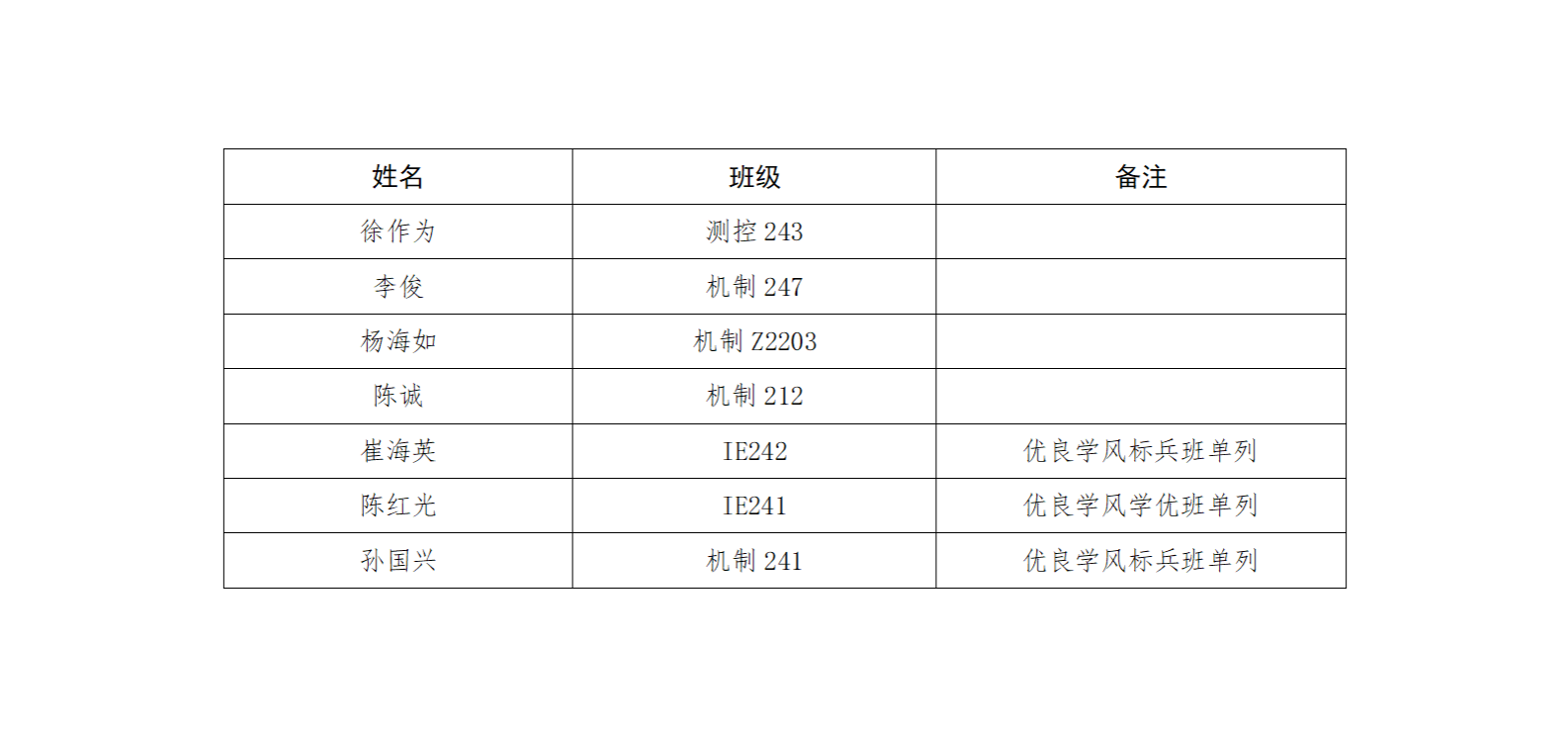 院系各班主任: