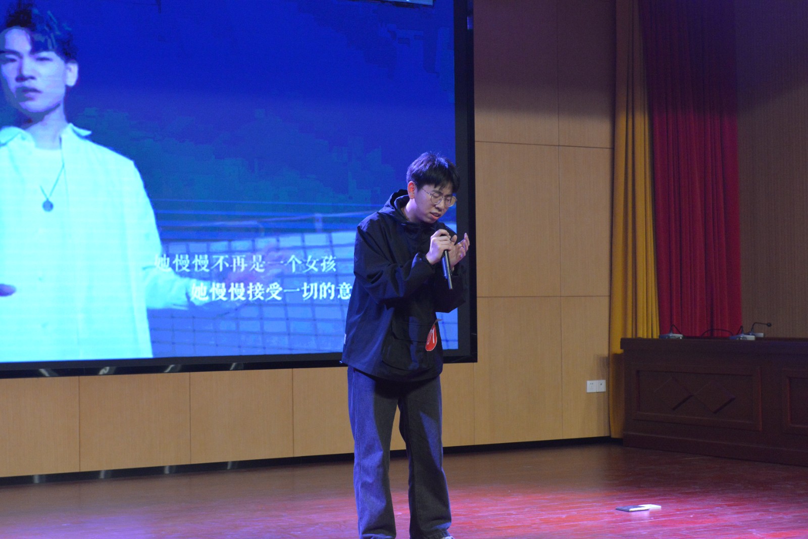 歌声是多么的神奇,它不需要叙述故事给我们听,只要听着曲子的旋律,就知道作者或歌所要表达的情感。经过评委老师的认真点评、仔细斟酌后确定本次比赛的优胜选手为IE223姜浩文、翻译201夏旭、测控211黄春晖。现场老师评委为获奖选手们依次颁奖。