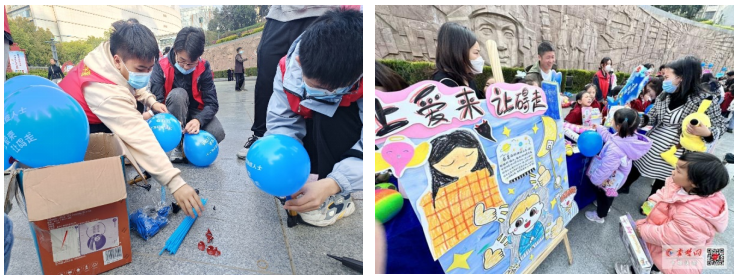 4月2日是第16个世界孤独症日。为了“星星孩子”更好的明天,让更多人看到并了解孤独症群体,助力“星星孩子”获得一个无障碍的生活环境和更加理解包容的社会环境,4月1日,​伟德国际VICTOR1946青春火志愿服务队与十堰市残联、十堰市茅箭区残联、十堰市茅箭区妇联,在六堰文化广场共同开展“壹家人,不孤独”的世界孤独症日蓝色行动线下倡导活动。