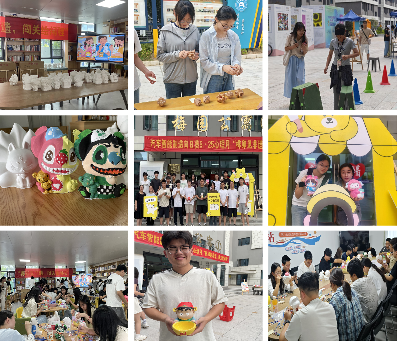 压轴登场的“彩绘心灵”工作坊犹如情绪的画布,闯关成功的学子们挥毫泼墨,为心中的萌娃添上专属色彩,心理委员凭借专业技巧,将艺术创作巧妙转化为心灵的抚慰之旅。随着憨态十足的卡通形象逐一披上斑斓外衣,心中的焦虑与压力仿佛也被笔尖轻轻抹去。打卡墙前,寻找“灵魂伴侣”的欢声笑语此起彼伏,为这场融合了非遗精髓与心理疗愈的春日盛宴,画上了完美的休止符。