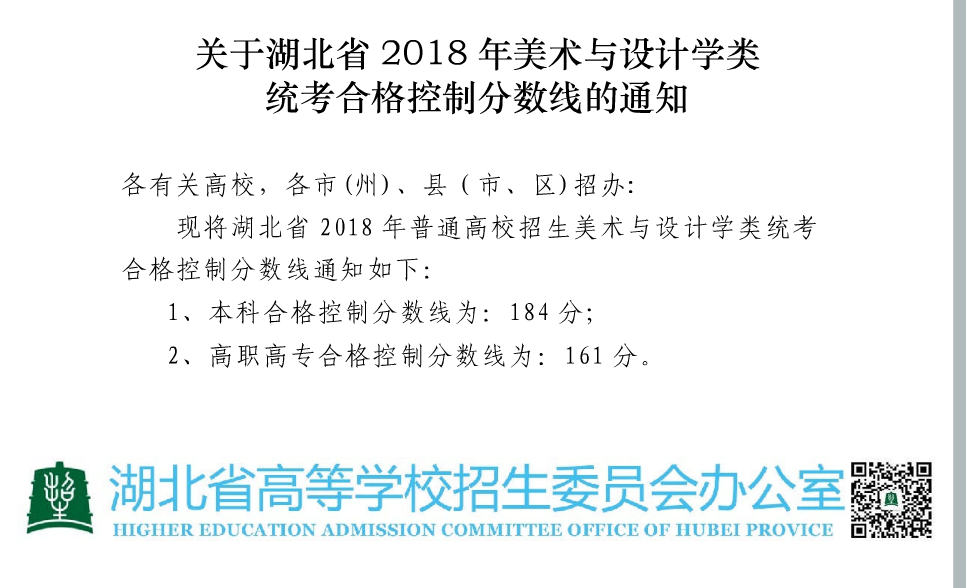 湖北省2018年美术与设计学类统考合格控制分数线