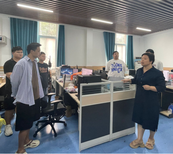 在研究生工作室,崔海英看望了正在专心撰写论文,备考考公的员工。崔海英、王红霞与同学们交流了假期安排与规划,对大家在炎热夏天仍然坚持学习的精神表示了充分肯定和高度赞赏。她勉励同学们珍惜暑假时光,合理制定目标和计划,持之以恒、直面挑战、克服困难、坚持到底,努力实现自己的梦想,也叮嘱同学们要注意劳逸结合、加强锻炼、健康生活。