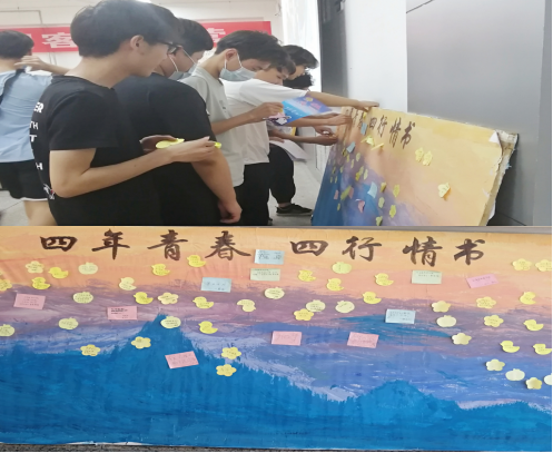 大学四年,有荣耀也有失意、有汗水也有遗憾,随着音乐响起,全体毕业生共同唱响歌曲《再见》,共同追忆大学四年的美好时光,共同回首即将离去的荏苒岁月。随后,大家在毕业留念宣传板上逐一留下毕业留言,记录下师生之间的深情厚谊,同学之间的深切祝福。会议在留恋与感动中落下帷幕。