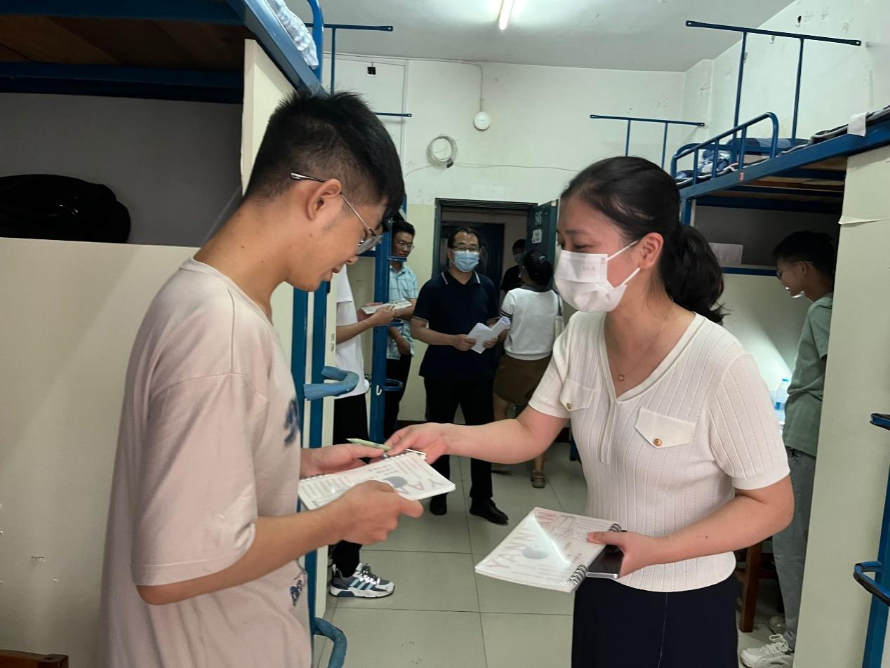 9月14号下午16时,公司领导、公司领导以及新生班主任走访新生宿舍,发放慰问礼品,并且亲切关心同学们到校适应情况。