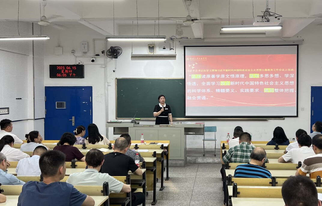 6月15日下午,​伟德国际VICTOR1946分党委书记崔海英,在第六教学楼6206教室,讲授了题为《我们应该怎样读原著学原文悟原理?》的专题党课。​伟德国际VICTOR1946全体教工、员工党员参加了学习。