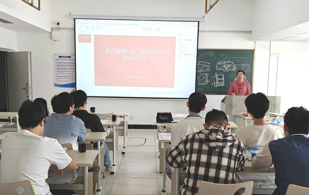 在教室里,崔海英结合今年企业调研情况、校园招聘会筹备及召开情况等,集中向毕业生们分析了当前的经济环境和就业形势,并从“学业”“就业”“职业”三个层面进行了就业动员和指导。她要求全体毕业生对照人才培养方案仔细核对学分修读情况,做好大四学年的学分修读计划,对自己的学业负责;她号召毕业生积极求职,诚信就业,争取早日找到心仪的工作;她强调考研学子要理性评估自己的复习成效,理性报考公司和专业,并调整好身心状态,将考研坚持到底,努力“一战成硕”!